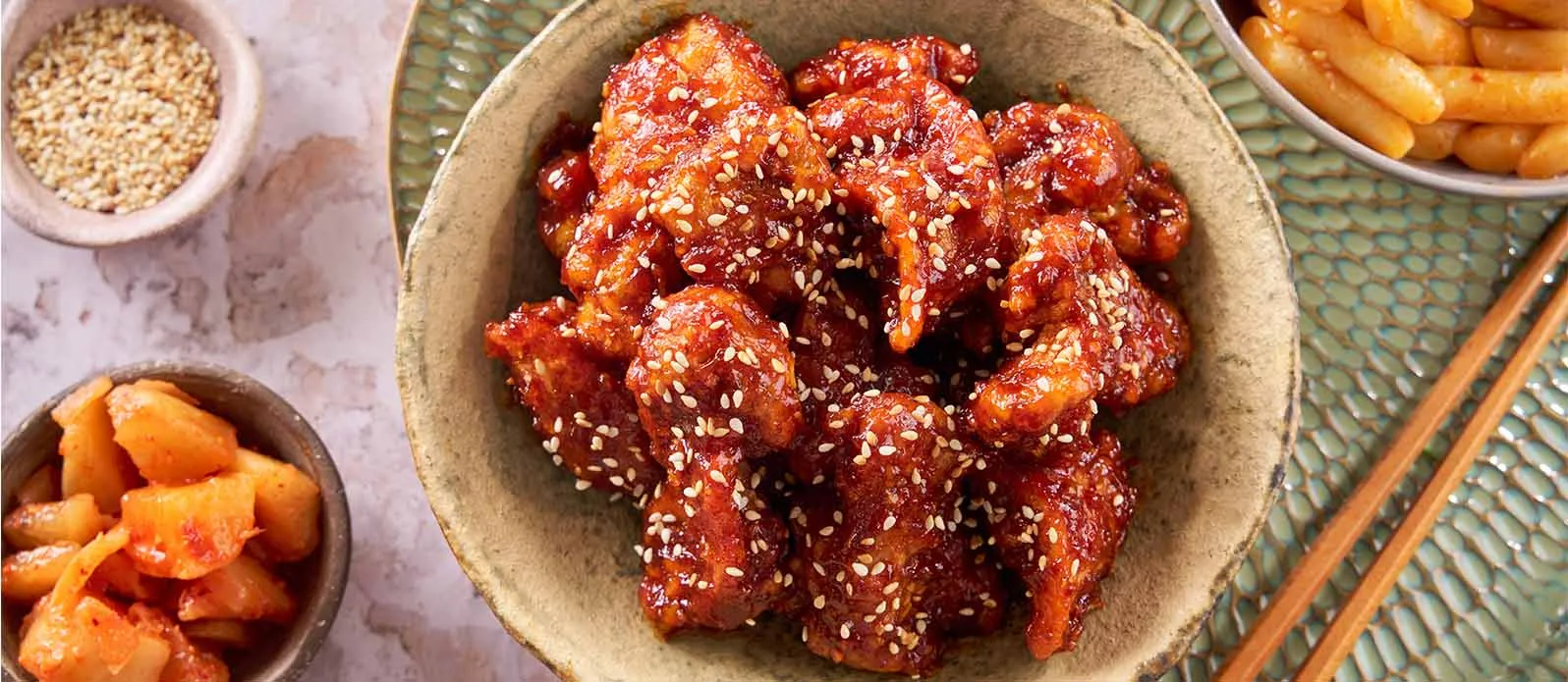 Kimchi soslu Kore usulü kızarmış tavuk