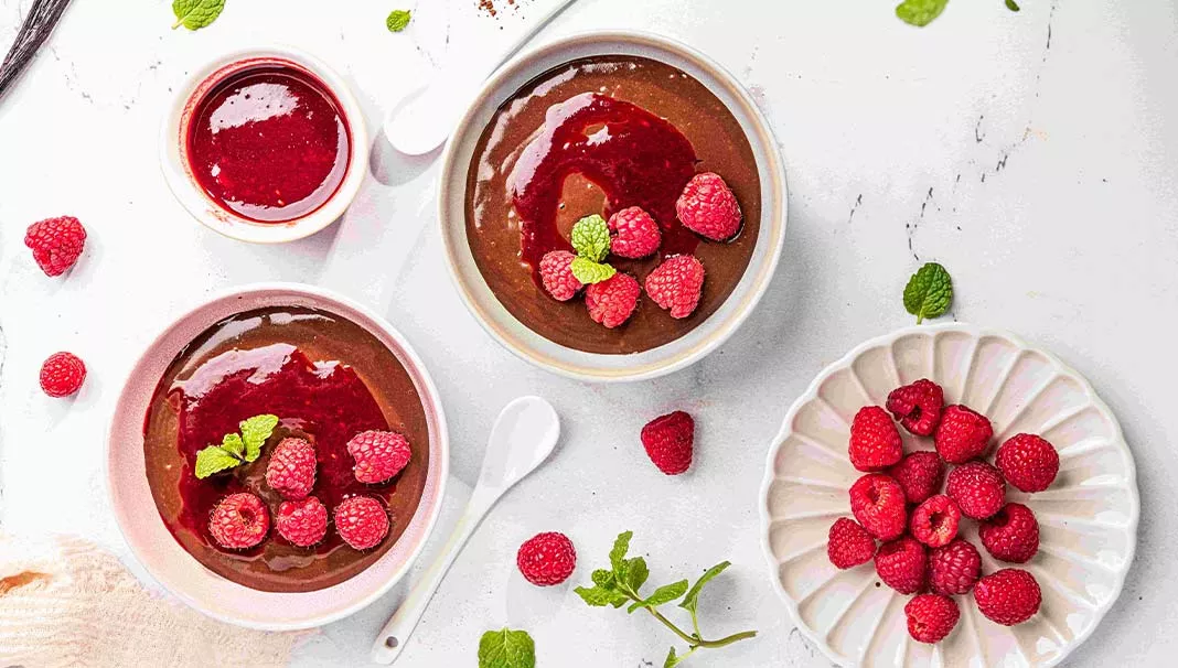 Canınız süper gıda olarak kabul edilen kakao ve ahududu ile şöyle tatlı bir şeyler mi çekiyor? O zaman karşı koyayamayacağınız bir pirinç tatlısı öneriyoruz: Ahududu soslu çikolatalı pirinç pudingi.