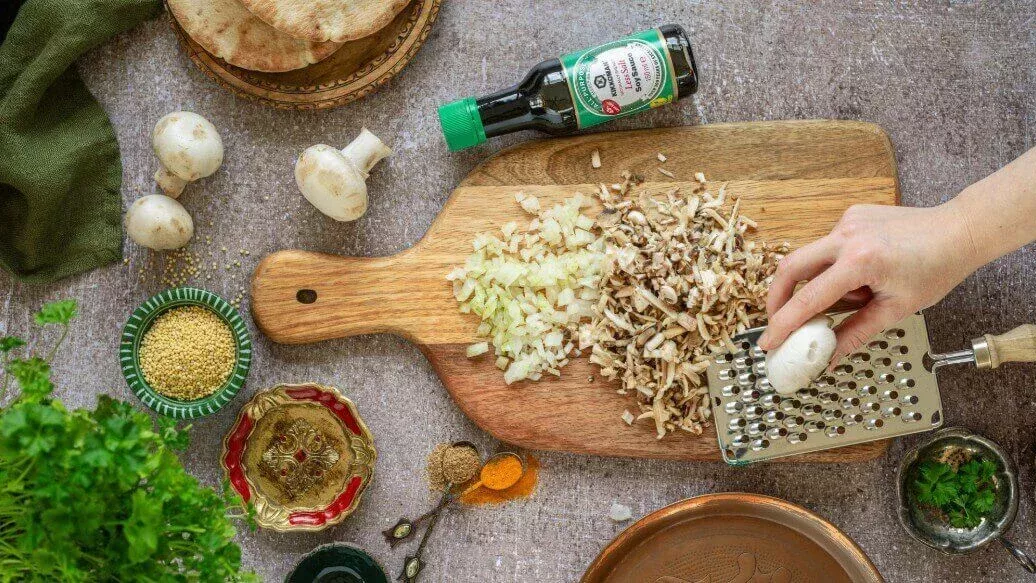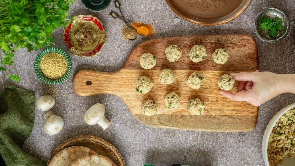 Darı ve çeşitli malzemelerden yapılan köfteler en iyi vegan yemeklerinden biridir ve mantarlı olanları hazırlamak kolaydır ve lezzet doludur. İç ısıtıcı ve aromatik baharatlarla dolu bir havuç sosuna harika bir şekilde eşlik ederler.