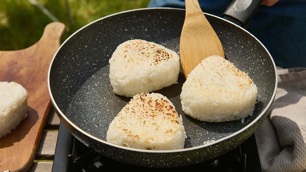 Dilerseniz, onigiri’yi nori yaprağına sarmadan önce ısınmış tavada da kızartabilirsiniz.
