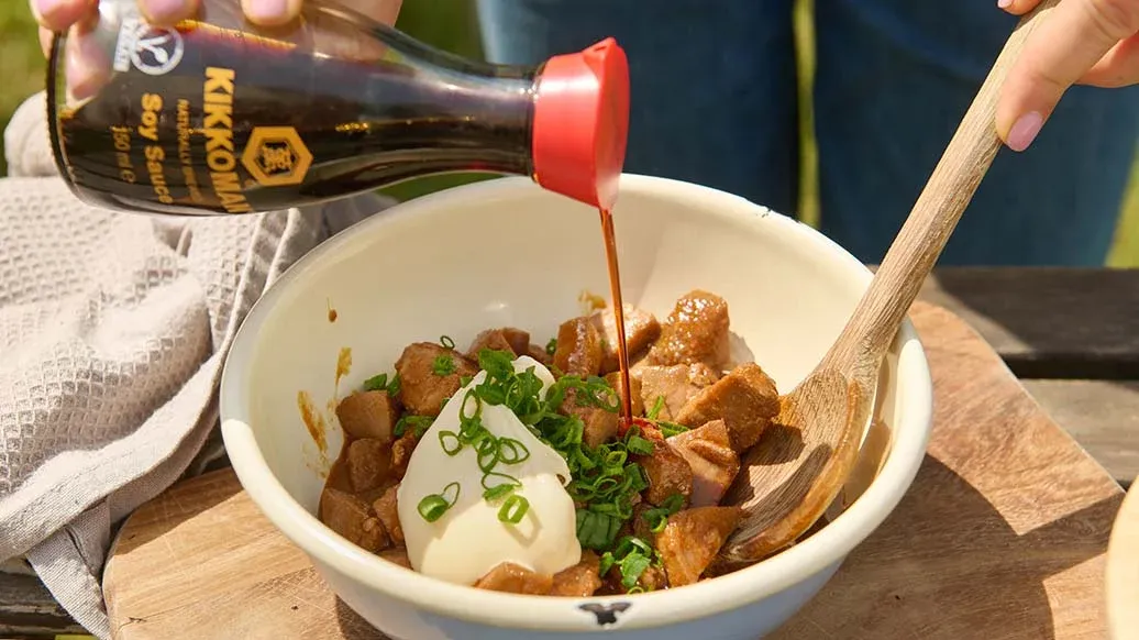 Ton balığına mayonez, doğranmış frenksoğanı ve Kikkoman Naturally Brewed Soy Sauce'u ekleyip karıştırın.