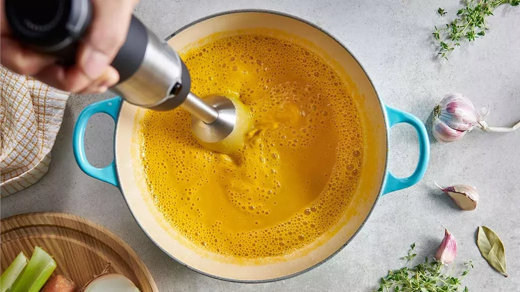 Tenceredekiler 1 dakika daha piştikten sonra blender yardımıyla maksimum hızda 3-3,5 dakika kadar karıştırın.