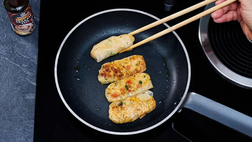 Geniş bir tavada Kikkoman Toasted Sesame Oil’i ısıtın. dumpling’ları her tarafı altın rengi olana kadar 4–6 dk kızartın.