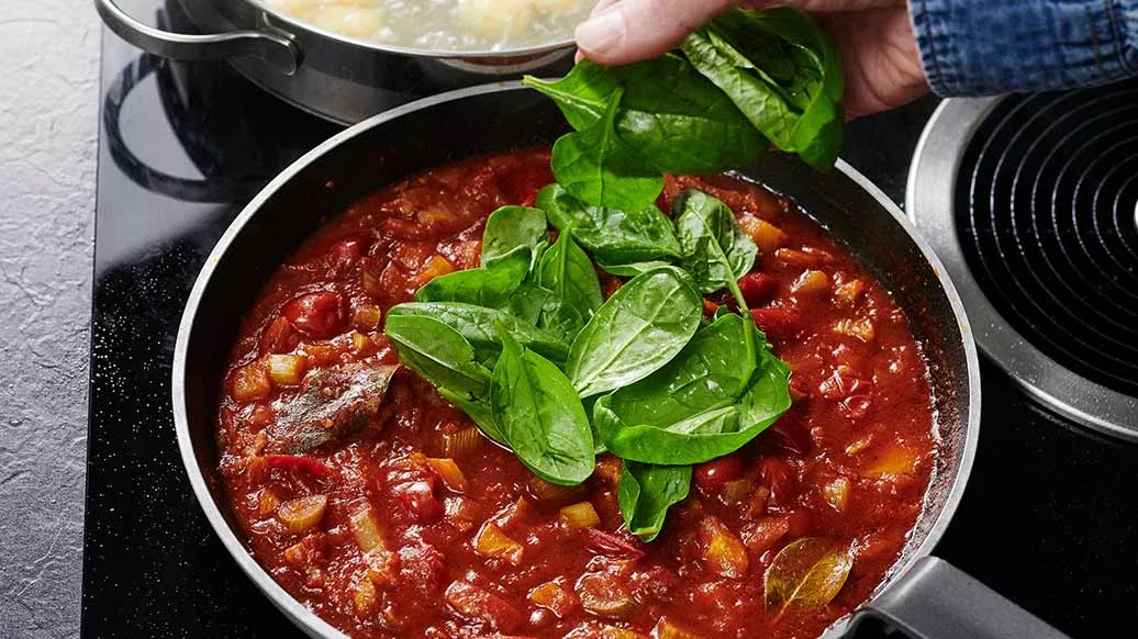 Rezene ve Ispanaklı Domatesli ve Sosisli Acılı Gnocchi