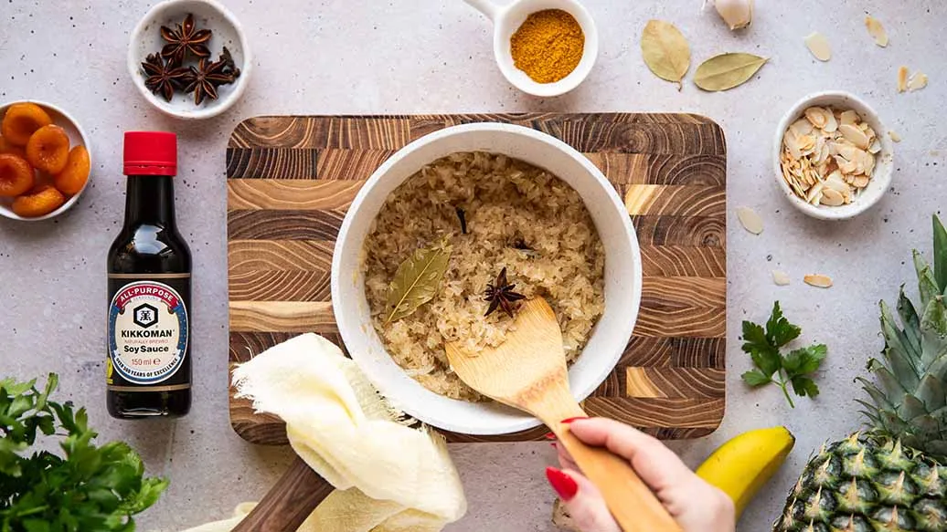 Riz Casimir pişmiş tavuk, hafif köri baharatları ve tatlı meyveleri bir araya getiriyor. Kikkoman Naturally Brewed Soy Sauce’un eklediği derinlik ve tuzlu lezzetle dengeli bir tat profili sunuyor. Sıcak servis edilen, doyurucu ve rahatlatıcı bir ana yemek.