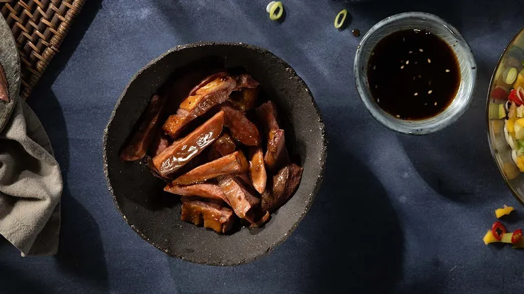 Gerçek bir lezzet patlamasına hazır mısınız? Bu tarifte çıtır teriyaki ördek göğsü, mango ve salatalıktan oluşan ferah ve meyvemsi bir salatayla birleşiyor. Acı biber ve Tay fesleğeni ise son dokunuşu yapıyor.