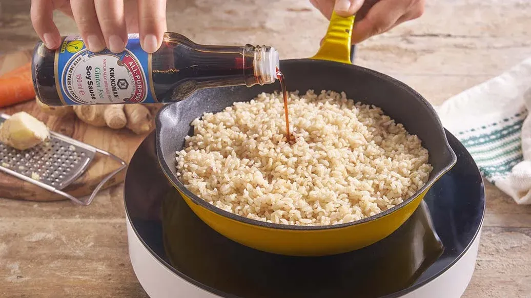 Pirinci, paketindeki talimatına göre pişirin. Bir tavada sade yağı eritip arpacık soğan ve sarımsağı 1 dakika kavurun. Pirinci ekleyin ve 2 dakika daha kavurun. Kikkoman Gluten Free Soy Sauce ile tatlandırın. Dal’ın üzerine dilimlenmiş yeşil biber serpiştirerek kızarmış pilavla servis edin.