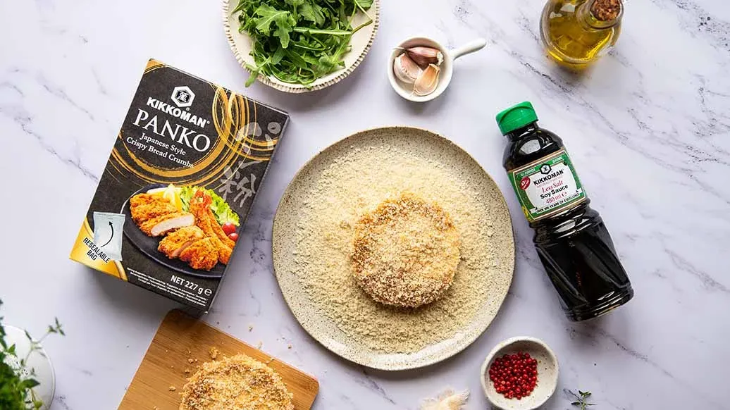 Yumurtaları Kikkoman Less Salt Soy Sauce, sriracha ve sarımsakla çırpın. Köfteleri yumurta ve Kikkoman Panko ile kaplayın. Ardından zeytinyağında her iki tarafı altın rengi olana kadar kızartın.