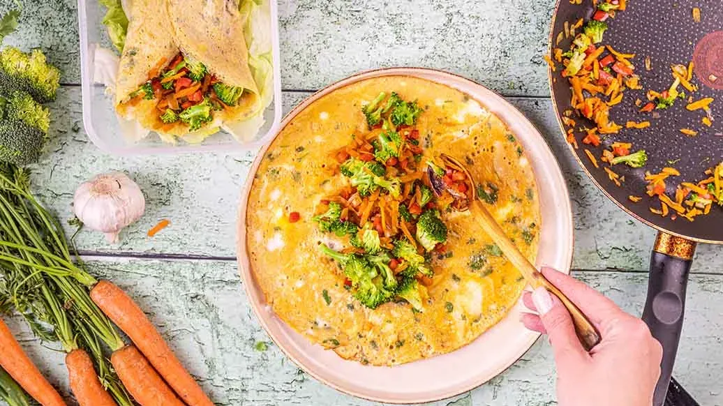 Daha kabarmış ve besleyici bir omlet için, pişirmeden önce yumurtalara bir damla süt ve biraz da un ekleyebilirsiniz.