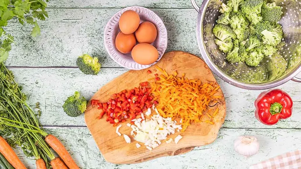 1 havuç – 0,5 brokoli – 1 kırmızı biber – 1 soğan – 1 yemek kaşığı bitkisel yağ